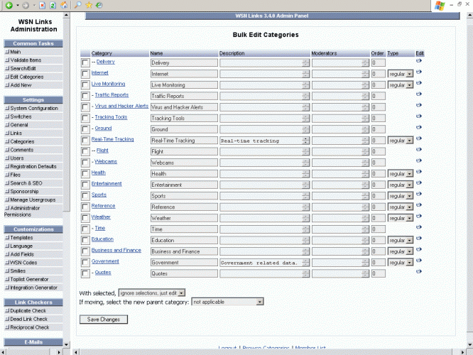 I have followed the install instructions strictly and have replaced all admin templates. Also I have (just) manually uploaded the admin template: bulkcategories.tpl from a freshly unpacked wsnlinks.zip