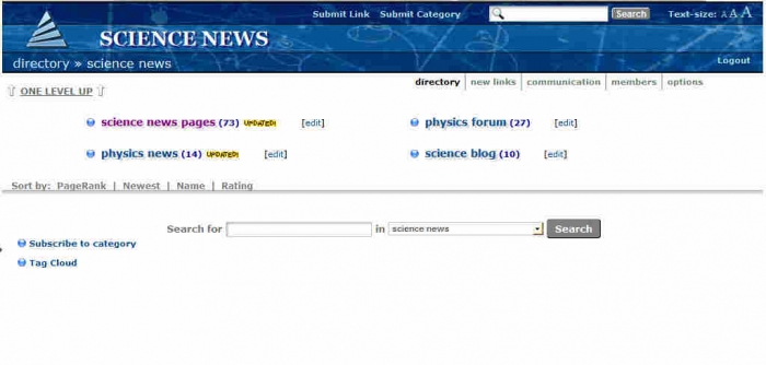 The category page and the link page ("sort by PAGERANK | NEWEST | NAME | RATING ")