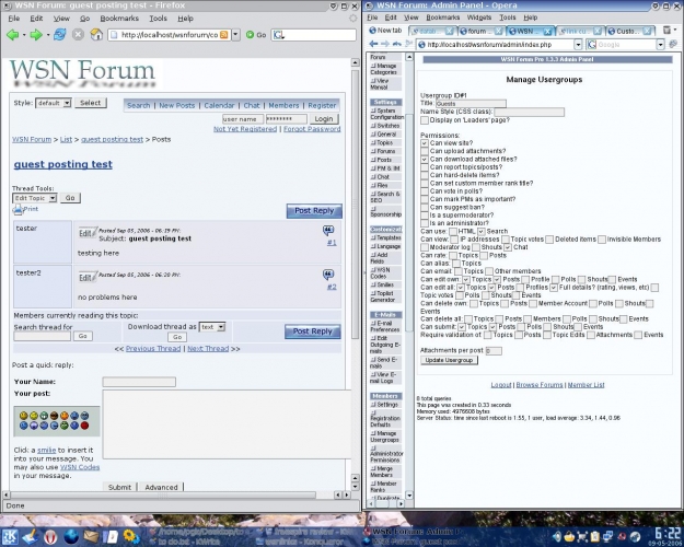 then i edit a single forum and set its permissions, so that guests can post topics and posts,