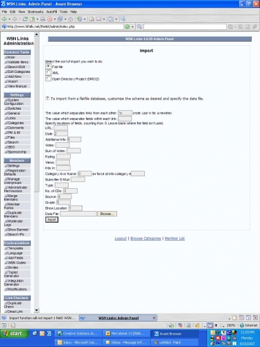 - a screenshot of the import options page - the import template I edited to show the additional fields I added - a text file with 1 line of test data to import