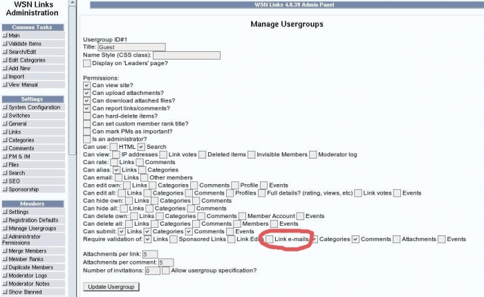 If you upgraded from a 3.x version, they're probably pending email verification. It should be running the query automatically though: UPDATE wsnlinks_links SET validatedemail=1;