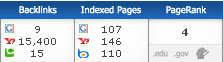 Number of 'Backlinks' and 'Indexed Pages' In addition to Page Rank details