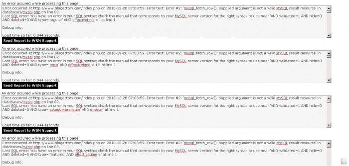 1. I tried again and got the similar/same error. This time, I have clicked on 'send the report' and I hope the report reached you. However I am also attaching all the errors I got in a text file here for your further perusal. (q1 -Error report.txt")