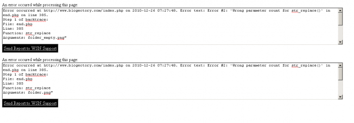 Did you click to send the bug report? I need the full information, a screenshot doesn't tell me what's going on. You got an error while loading the homepage, not while loading the suggest listing page? If so, it's impossible for it to be related and it would've been coincidental timing. Tested and I get no errors on either page while using that HTML link in the wrapper.