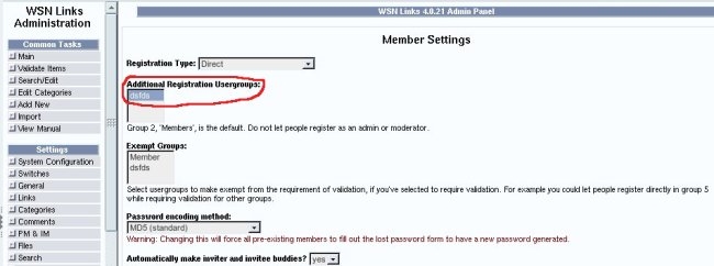 Groups are made registerable by selecting them in the list: