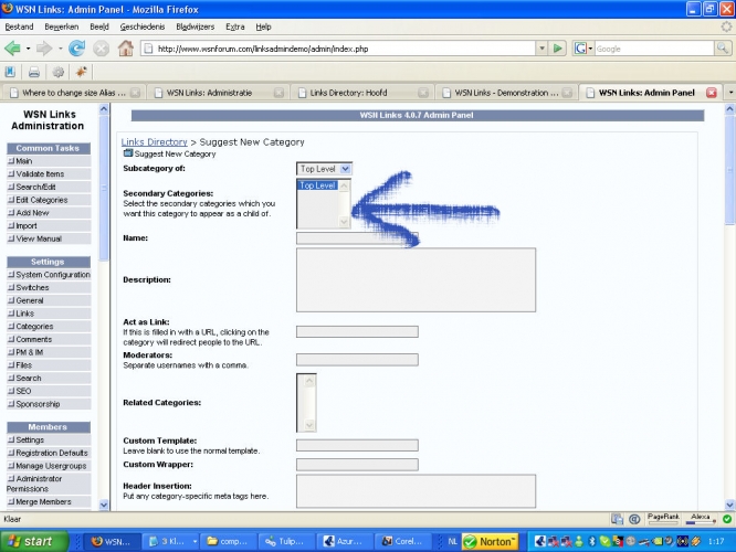 In admin you see add new (category)